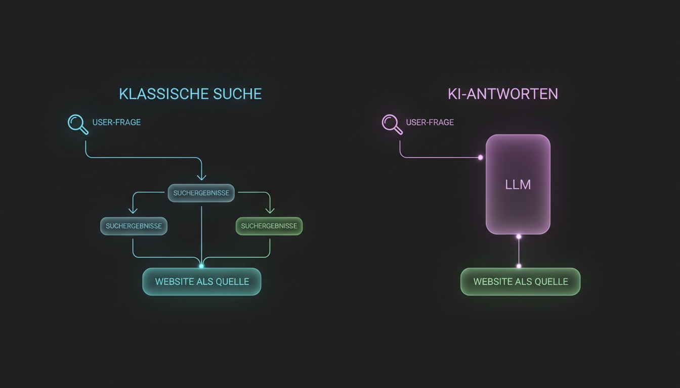 2026 kommt ein drittes Ziel dazu: Antwortmaschinen (LLMs). Nutzer fragen nicht mehr nur "Webdesign Agentur Wien", sondern: